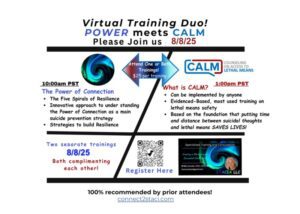 Join us for this live, virtual training based on the “most interesting, humorous, and applicable book I’ve ever read on resilience…” The Five Spirals of Resilience: A Guide to Understanding and Building Resilience. The Power of Connection provides an innovative approach to understanding and using Resilience and the power of connection as a primary suicide prevention strategy. August 8, 2025 Virtual Training Registration Link